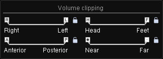 ![]() | Tip: Additionally to the patient orientation based clipping planes, you can also change visibility based on view depth with the Near - Far clipping slider. |